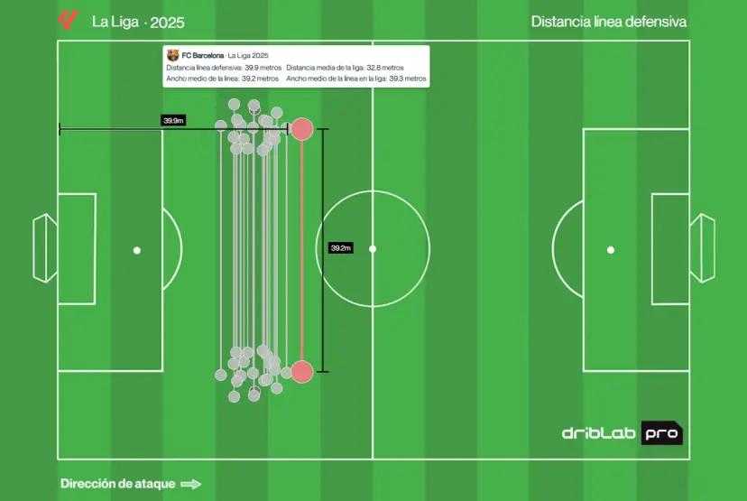 Vzdálenost obranné linie Barcelony v aktuální sezóně