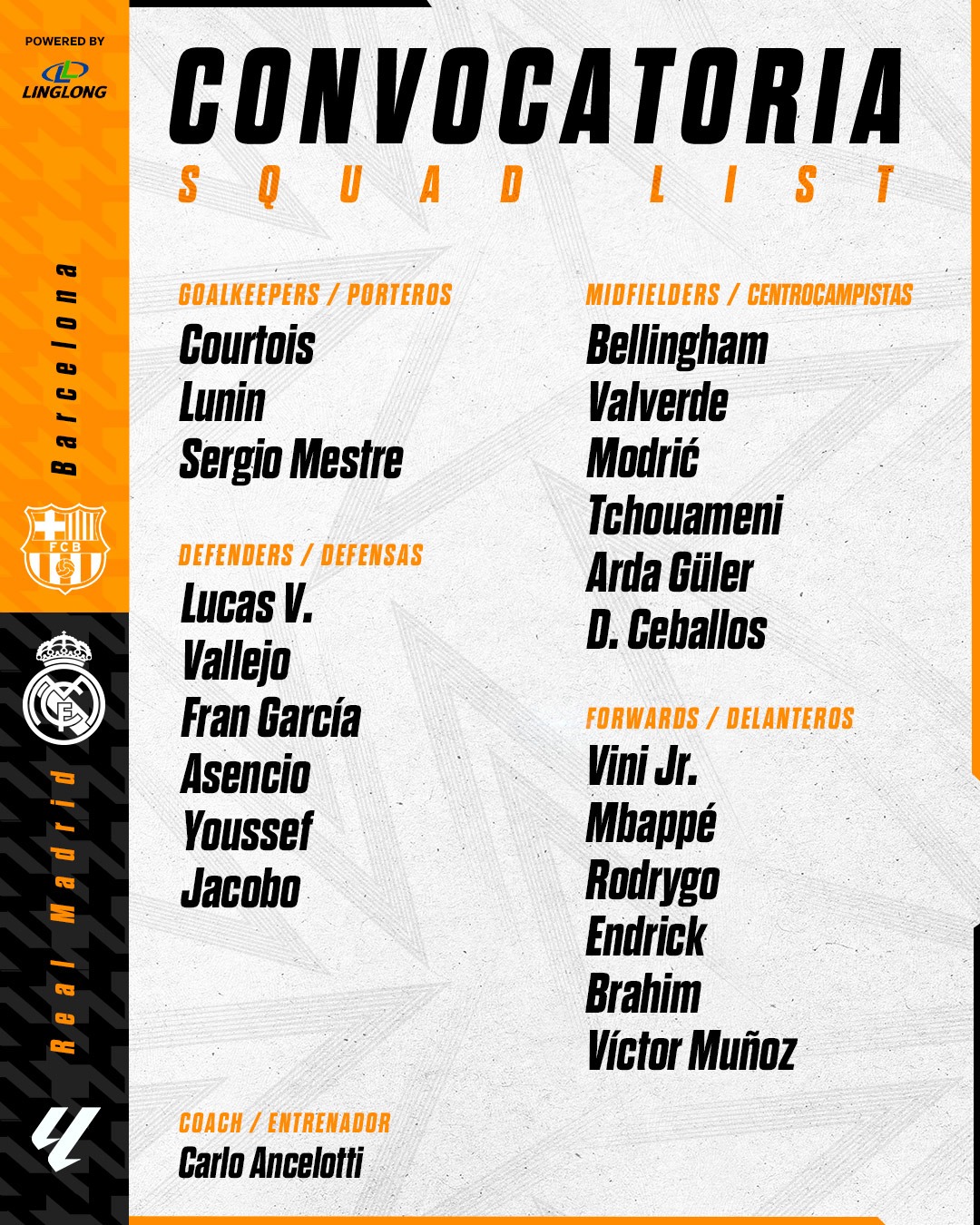 Lucas (84. Endrick) – Tchouaméni – Asencio – Fran