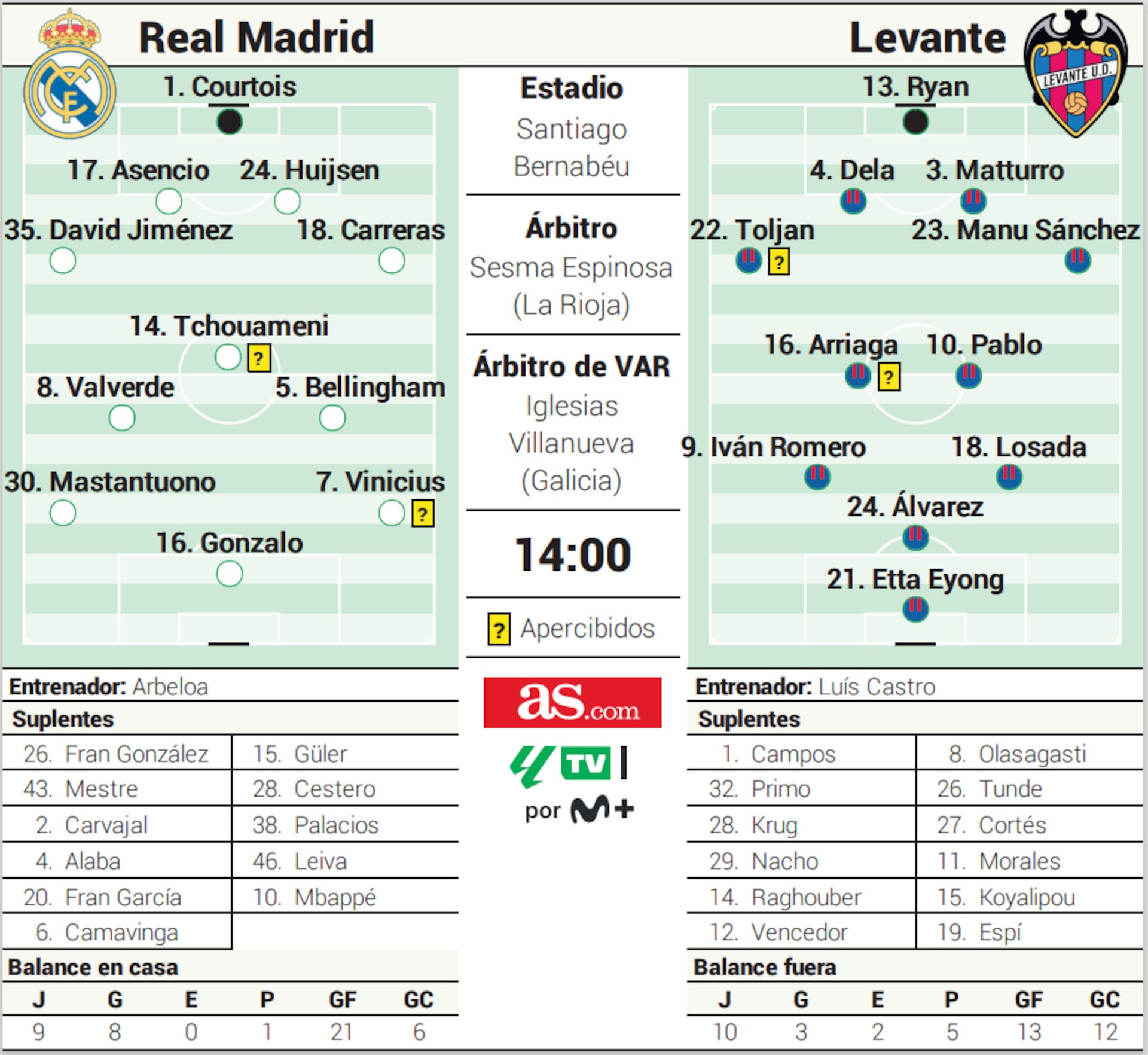 absolutni neschopnost celeho tymu, levante mnohem lepsi, Arbeloa vubec nevedel co delat a jeho (ne)“system“ na to se nedalo divat – carreras na hrotu , camavinga na pravem kraji, bellingham na stoperovi, tchouameni na SOZ, real 0 vytvorenych akci v prvnim polocase.