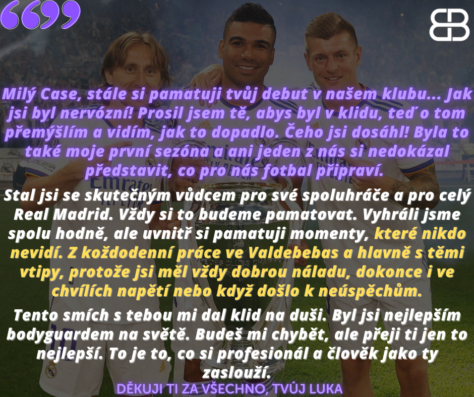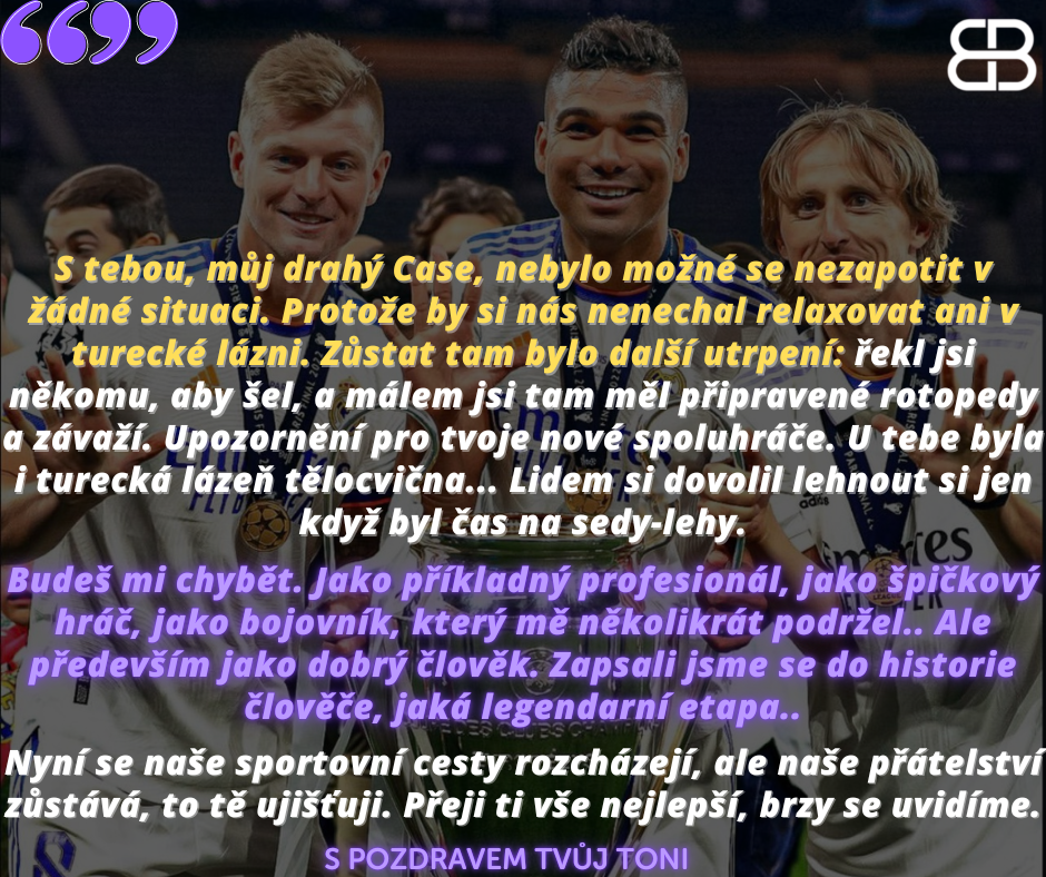 Casemiro oficiálně přestoupil do Manchesteru United, čímž se rozpadlo nejlepší trio v historii fotbalu CKM. Luka Modrić i Toni Kroos poslali přes uznávaného novináře Maria Corteganu dopisy na rozloučenou. Z obou dopisů jde poznat, že jejich přátelské pouto bylo a je neuvěřitelně silné.