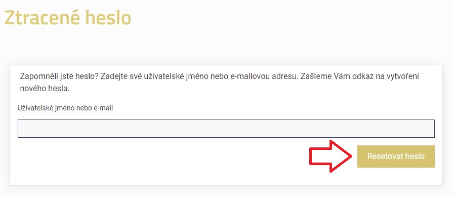 3. Následně zadejte e-mail, se kterým jste se registrovali na starém webu BilyBalet.cz a který patřil k vašemu účtu a klikněte na „Resetovat heslo“.