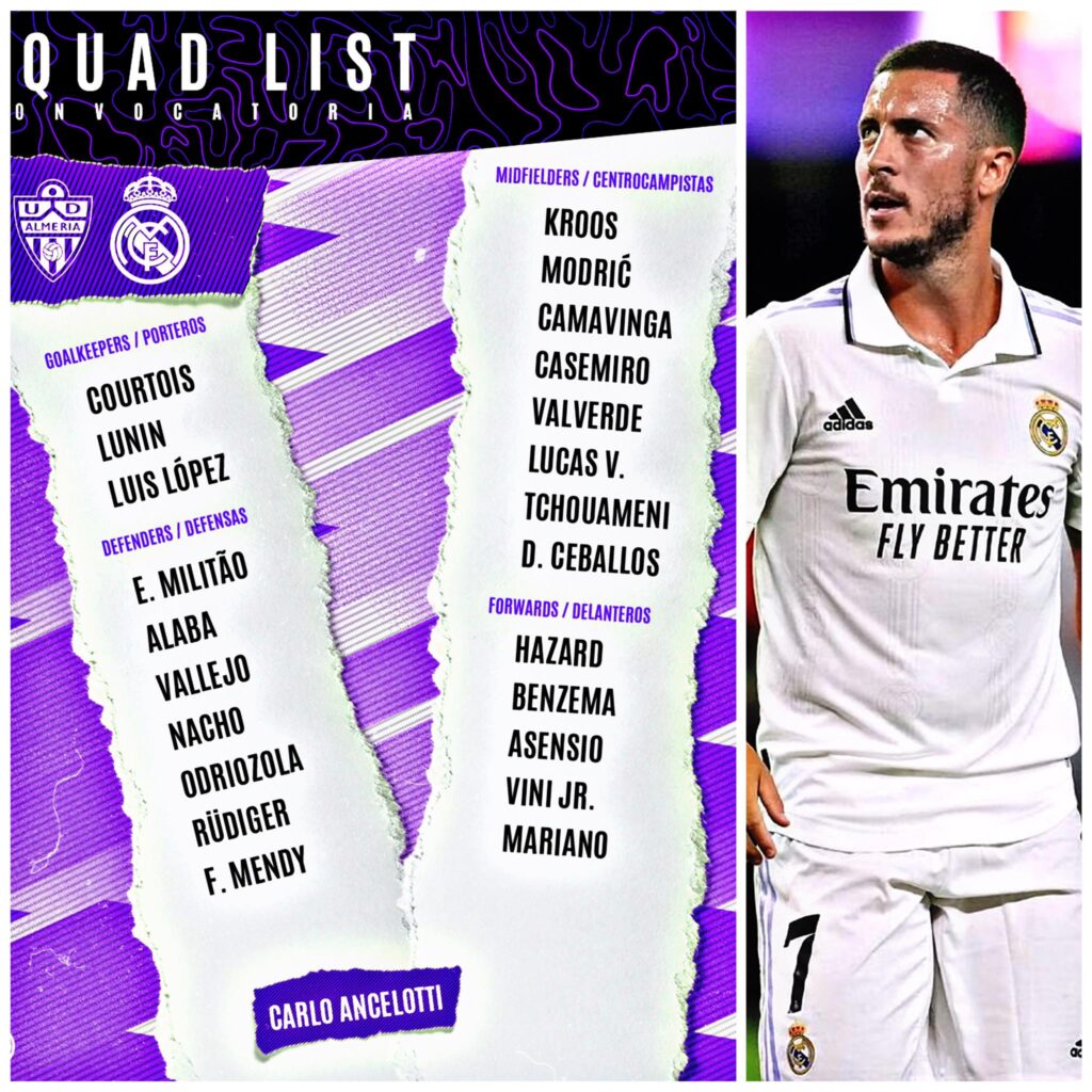 Real Madrid čeká v neděli první ligový zápas na půdě nováčka z Almeríe. Utkaní startuje ve 22:00 našeho času. Carlo Ancelotti zveřejnil nominaci na tento zápas ve které chybí Dani Carvajal a také Rodrygo. První jmenovaný dostal od trenéra volno, Brazilec se pak potýká s menším zraněním.