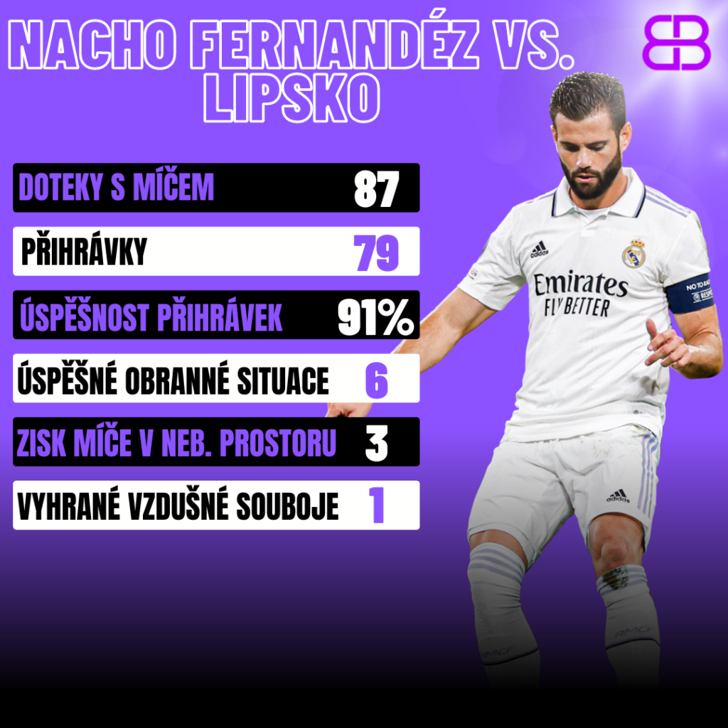 Slovní spojení, pan spolehlivý, jste u nás mohli po zápase s Lipskem číst docela často. Je to také první věc, která nás všechny napadne, když vidíme jaké výkony Nacho předvádí i přesto, že se mu nedostává tolik příležitostí. Když už však Španělský stoper nastoupí, pak většinou předvede nadprůměrný výkon. To přesně se stalo v duelu s Lipskem, kdy byl ze stoperské dvojice tím, kdo byl více vidět. Celkově měl až 87 doteků s míčem a jeho přihrávky měli 91% úspěšnost. Zároveň 3x odvracel míč z nebezpečného prostoru a celkově si připsal až šest úspěšných obranných situací. Nesmíme také opomenout, že vytvořená dvojice s Rüdigerem toho spolu příliš neodehrála, takže čisté konto je o to více cenné, pro oba dva.